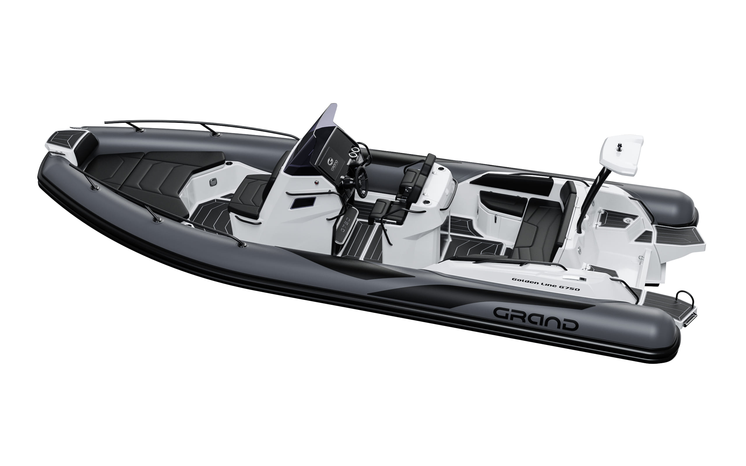 Grand 750 Golden Line RIB setter en ny standard for 7,5 meters rib klassen. Her får du en meget lekker og godt designet båt, med solide og sportslige sjøegenskaper og meget god utnyttelse av plassen. Med Grand 750 Golden Line RIB begynte Grand boats med blanke ark.