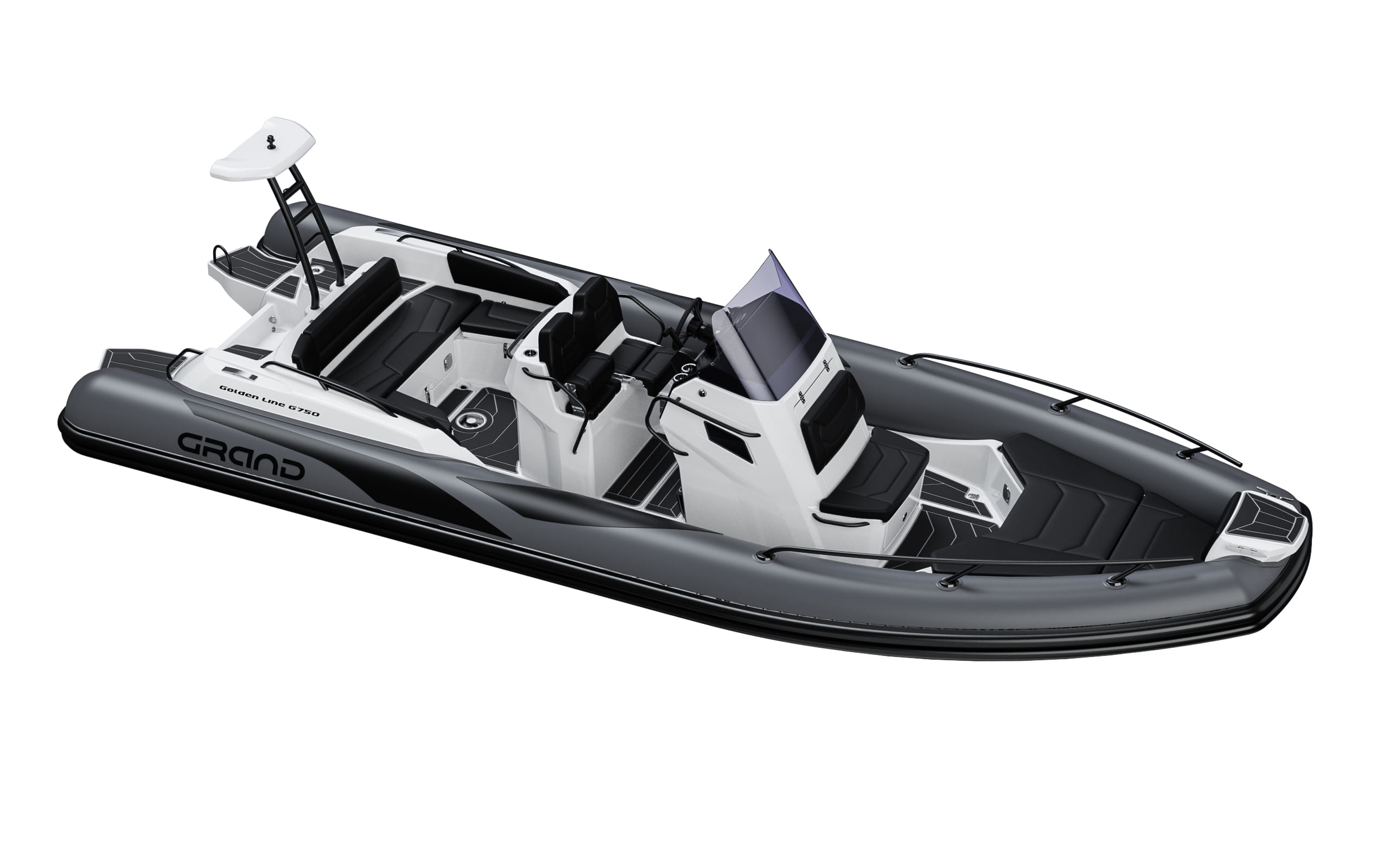 Grand 750 Golden Line RIB setter en ny standard for 7,5 meters rib klassen. Her får du en meget lekker og godt designet båt, med solide og sportslige sjøegenskaper og meget god utnyttelse av plassen. Med Grand 750 Golden Line RIB begynte Grand boats med blanke ark.