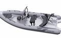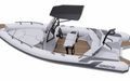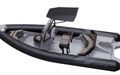 - Golden Line Classic: Mørk grå (Military Grey) PVC pontong – Hvit gelcoat – Sort lakkert rustfritt – Carbon sort/Diamante Carbon setetrekk
