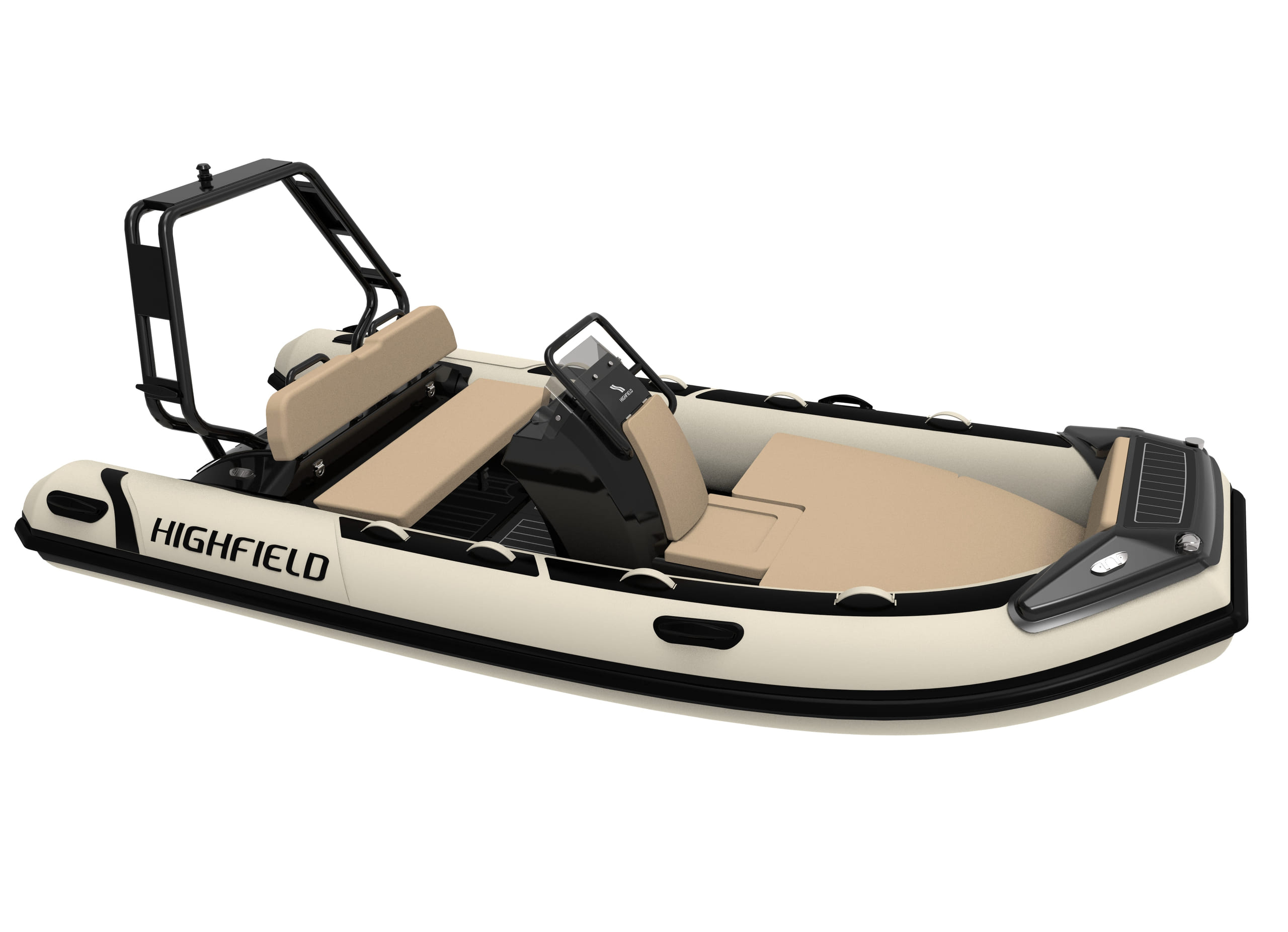 Mørk grå PVC pontong – Grått skrog – Silvertex Neo Mandarin/Diamant Carbon putesett - Targabøyle - Solseng - Helcover, EVA dørk, Valmex® PVC-pontonger, Sveisede sømmer (PVC), Innfelt tilbakeslagsventiler, Høy kvalitets kromert og pulverlakkert aluminiumskrog, Fast drivstofftank 55 L, Regnlensende dekk, Integrert baksetet med pute, Konsoll med lav profil, Integrert akterspeilstøtter, Løftepunkter og slepeøyne, Festepunkter for tau, Børstet skum teak finish dekk, Kraftig fenderlist, Kjølbeskyttelse i full lengde, Highfield tørrpose, Fotpumpe, årer, reparasjonssett, Elektronikkpakke for båt og konsoll, Mercury sidemontert kontrollboks, Elektrisk powertrim & powertilt, Mercury Black Max propell, EFI, Batteri.