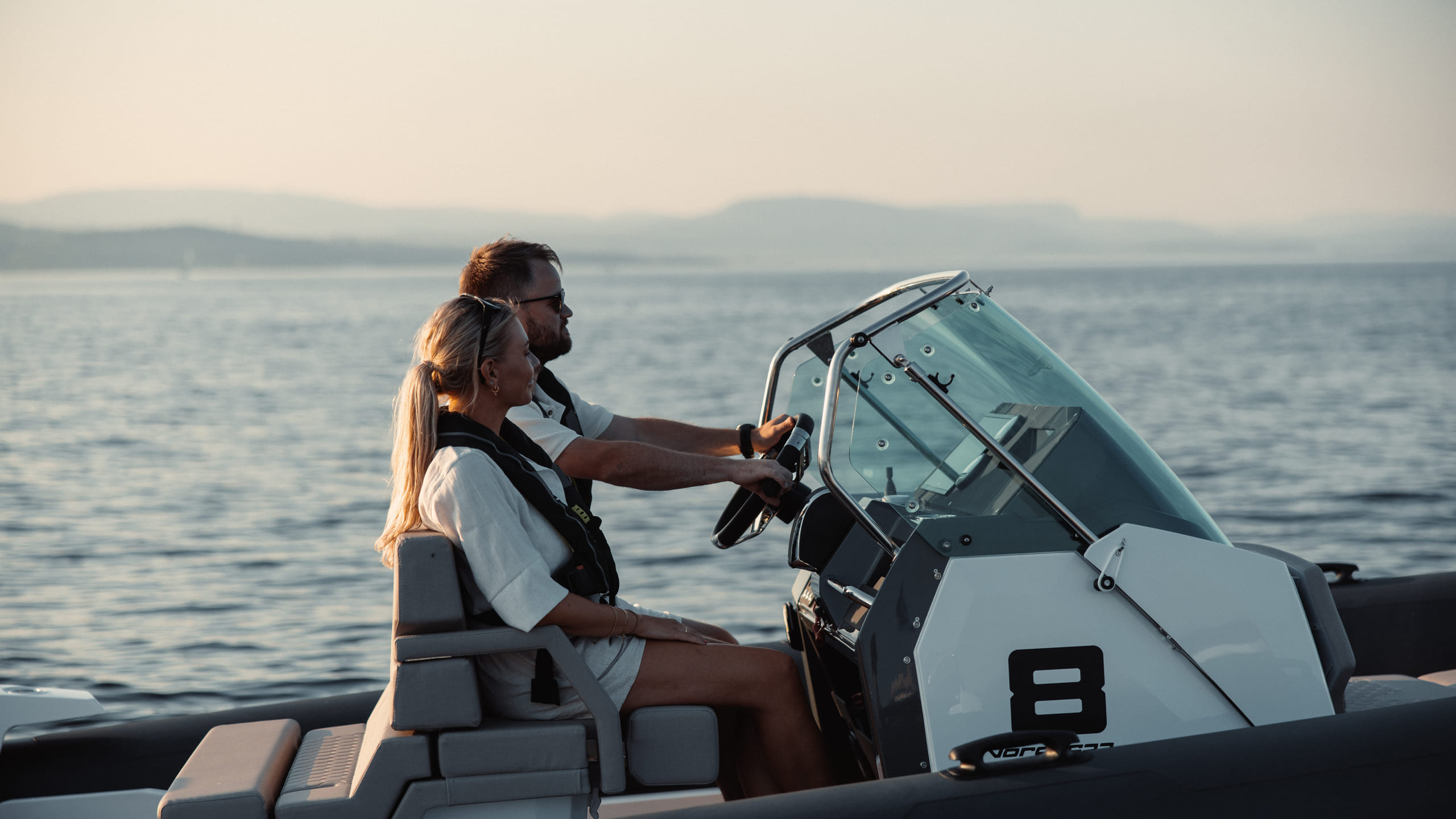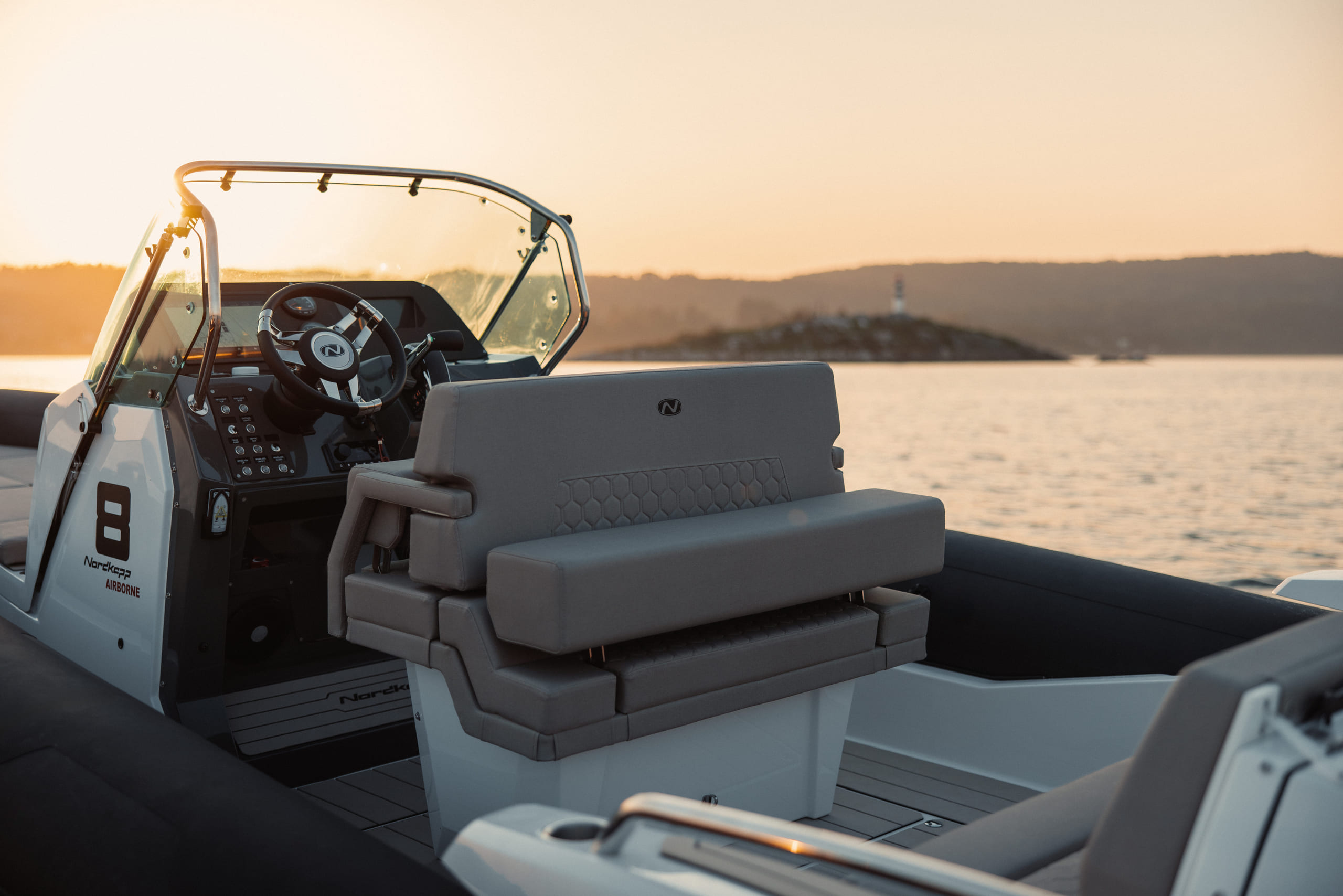 Airborne 8 skal oppleves som en trygg og god båt, og vi har lagt mye fokus i båtens design for å gi deg den følelsen. Båtens unike plassering og utforming av pontongene gir deg en RIB med følelsen av økt kontroll.
