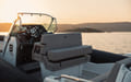 Akterdekket på Airborne 8 er stort og med god plass til familie og venner. Med nedfellbar sittebenk (ekstrautstyr) mot cockpit og en bred og god akterbenk får du plass til 5-6 personer.