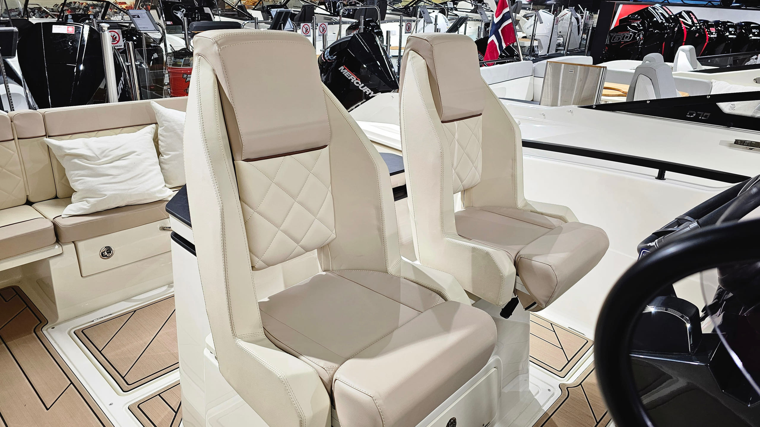 - Utvidet Elektronikkpakke med stor GPS: Simrad kartplotter 12″ NNS evo3s med HDI-giver, VesselView digital tilkobling, Fusion lydanlegg med 4 høyttalere