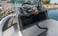 Konsollen er plassert noe mot styrbord, og har god plass til passasje på babord side, samt at du kan passere på et forhøyet nivå på styrbord side. Foran konsollen finner du plass til 4 fendere, og du får et ryddig og praktisk sted å ha disse når de ikke er i bruk. Konsollen kan vippes opp mot kjøreretningen, og dermed får du tilgang til et større stuerom for å få bagasje eller handleposer vekk fra dørken. Denne har også et stort, åpent stuerom hvor du kan legge løse gjenstander som skal være enkelt tilgjengelig. Sting 530 S kan utstyres med kartplotter og du finner motorinstrumentering og gass/gir plassert for en behagelig føreropplevelse.