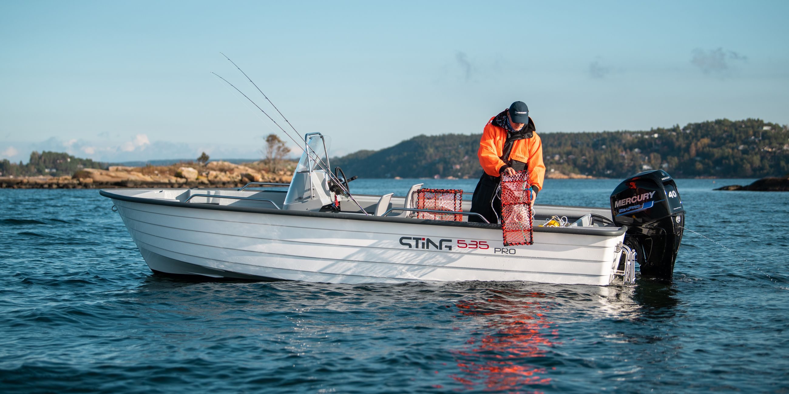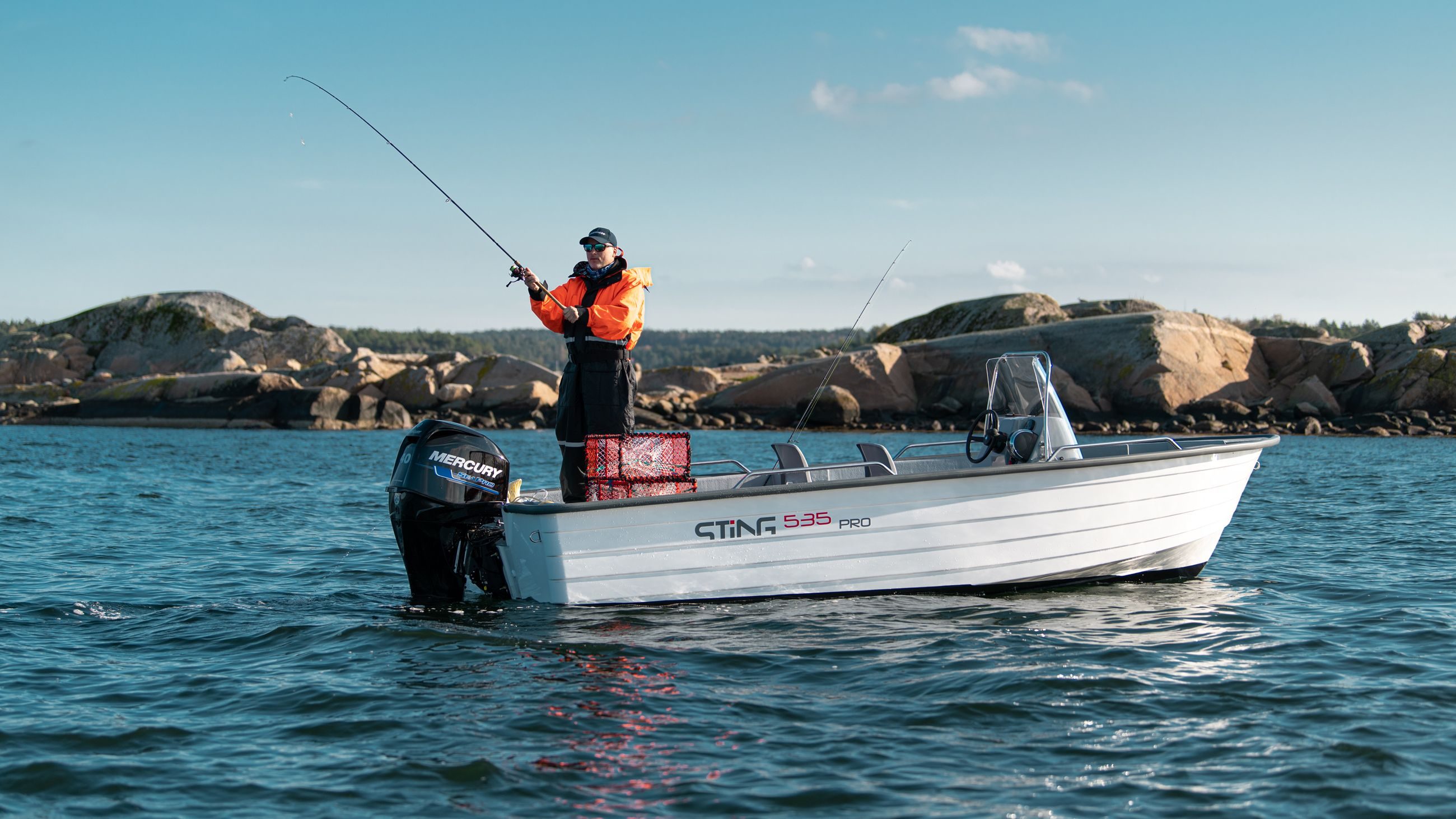 Sting 535 Pro er en båt hvor vi har lagt vekt på to viktige elementer: stor og praktisk dørkplass, sammen med gode, smarte stuerom. 535 Pro er en allrounder laget for praktisk bruk – bred og stødig med god plass til fiske- og fangstutstyr. Båten er bygget for bruk i all slags vær, enten det er finværsdager eller dager med røffere forhold. 535 Pro er populær både som en praktisk hyttebåt eller som en solid arbeidsbåt. Det er plass til to bensintanker i det romslige stuerommet i akterbenken, noe som gir deg en ekstra sikkerhet på sjøen.