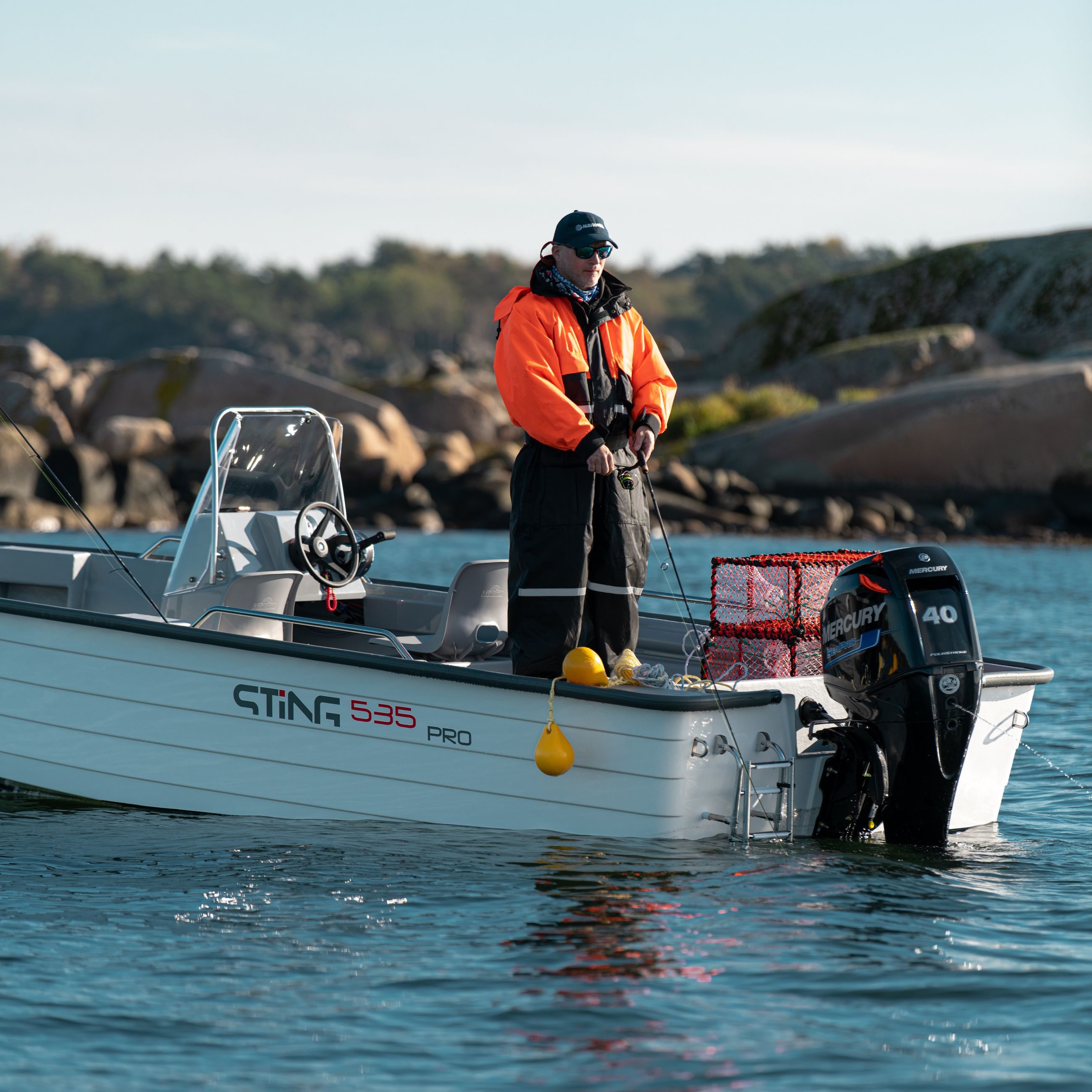 Båten er også meget godt egnet som landstedsbåt, og spesielt for de som måtte ha et transportbehov. Båten har god lastekapasitet (8 personer), stor bredde kombinert med en liten kjøl sørger for at båten er meget stabil. Sting båtene leveres ferdig montert med Mercury påhengsmotorer.