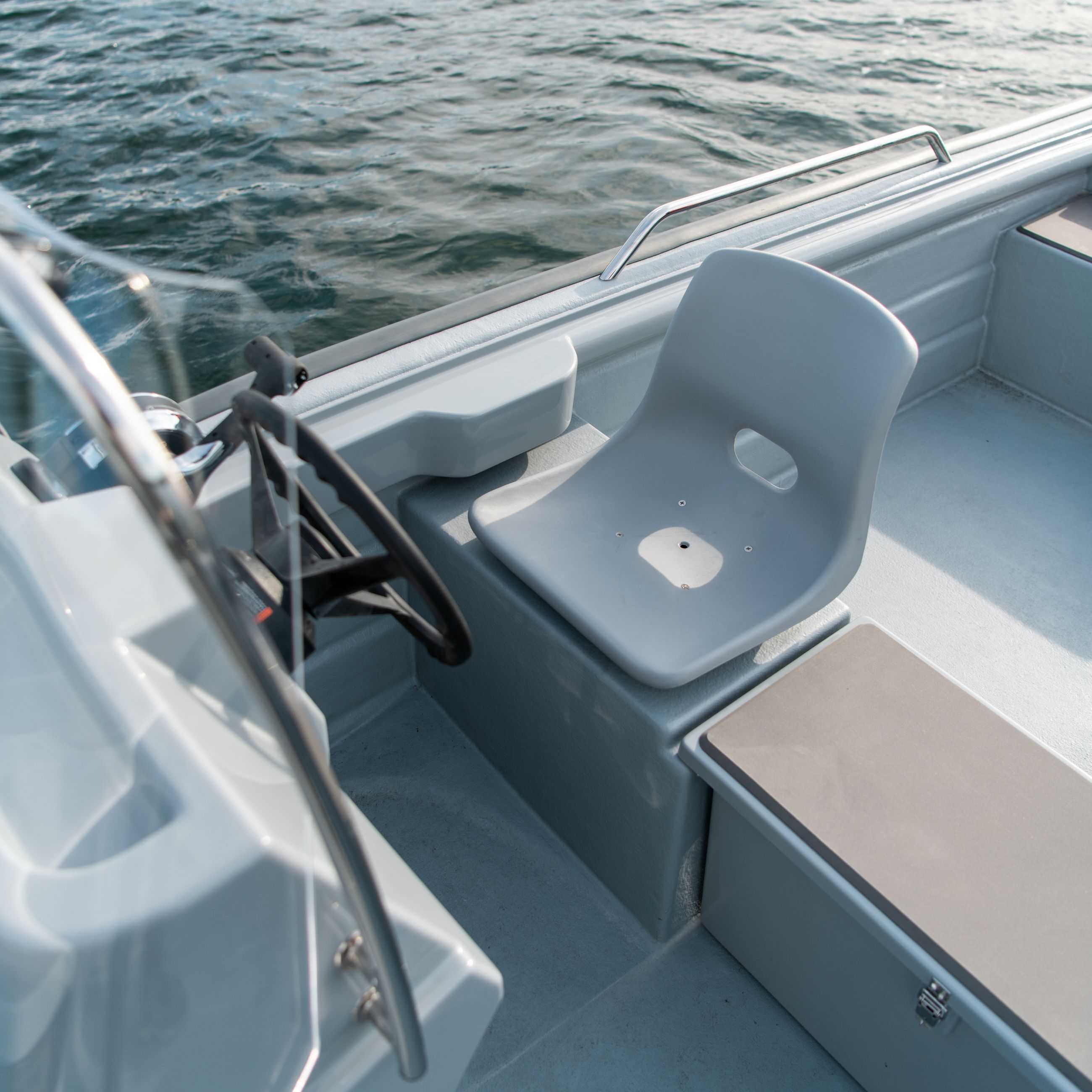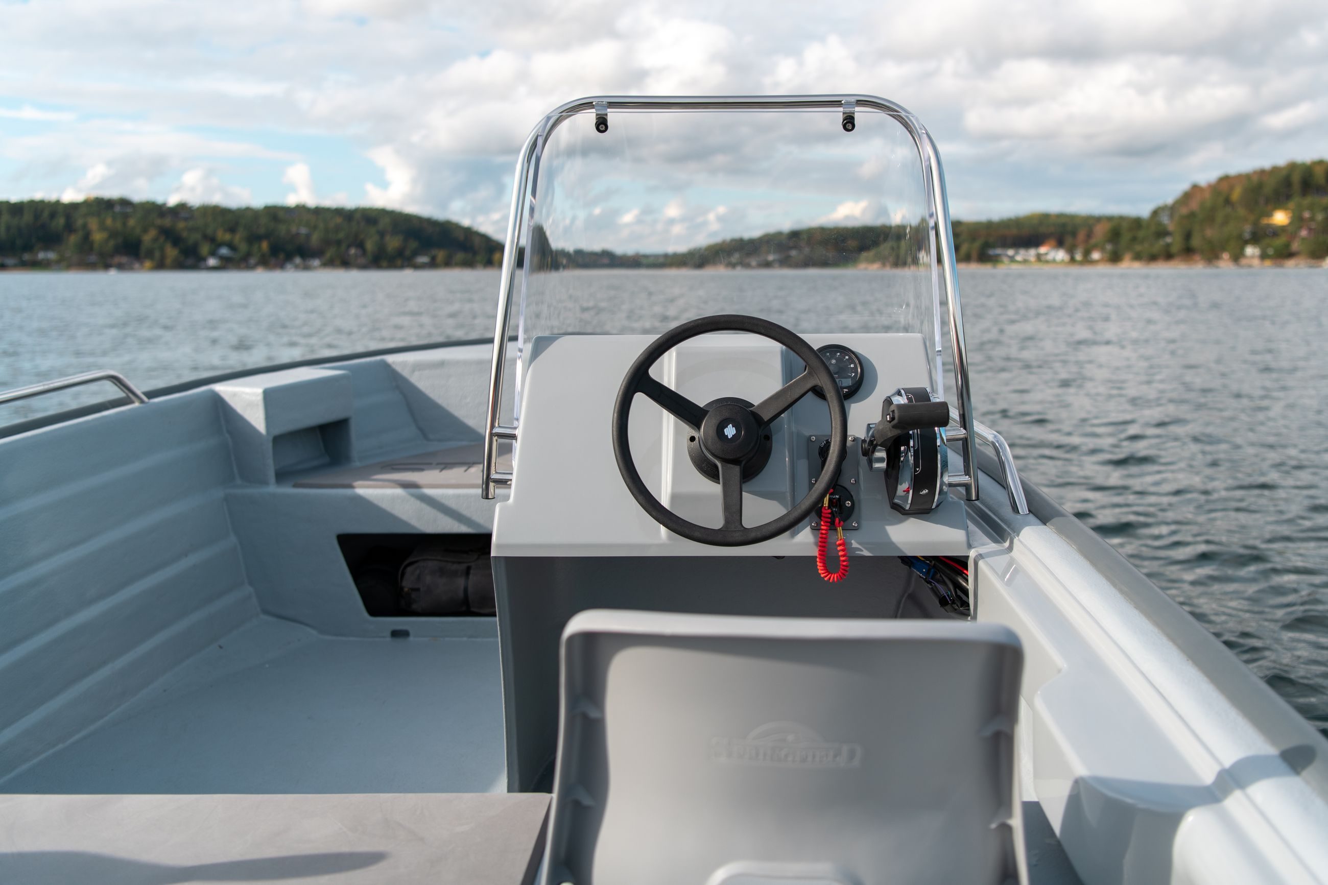 Styrekonsollen på Sting 535 Pro er bred og gir god skjerming for vind, samtidig som den er praktisk og oversiktlig å bruke. Du kan bestille din 535 Pro med navigasjonsutstyr og sjøvannsspyling bryter på panelet i konsollen ( og som kobles enkelt på akterdekket). Slik gjør du dørken ren på 1-2-3 etter fiske, eller turer hvor det kommer sand o.l. ombord. 535 Pro har også en brakett for feste av fiskeutstyr plassert midtskips på babord side.