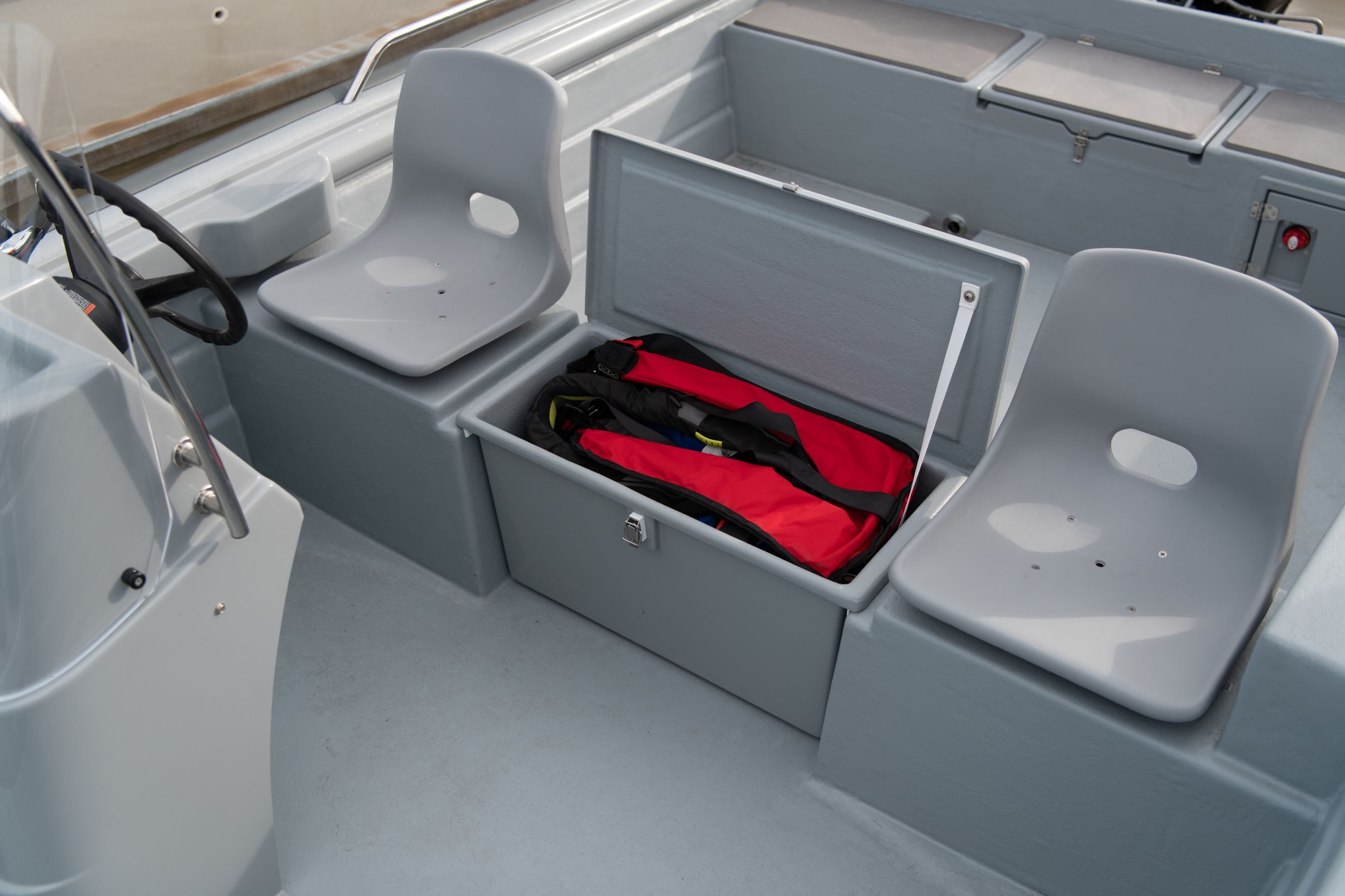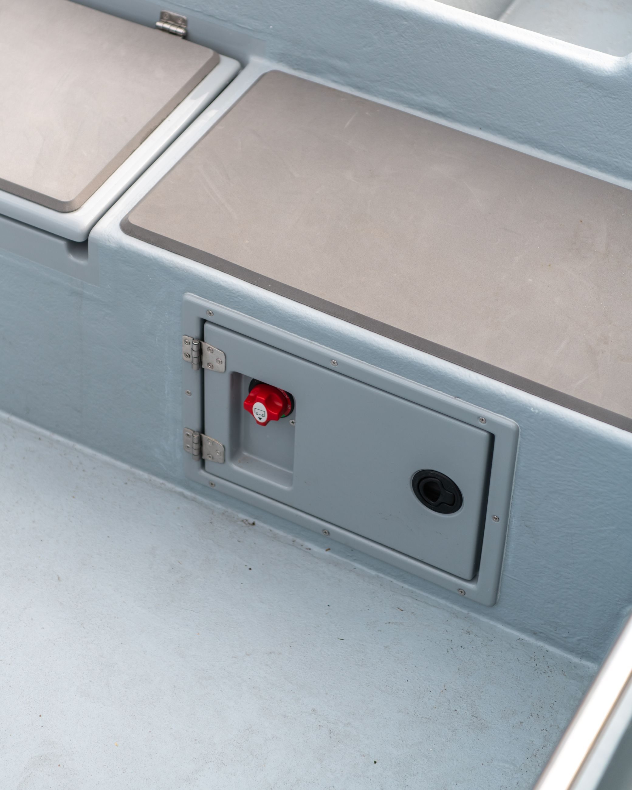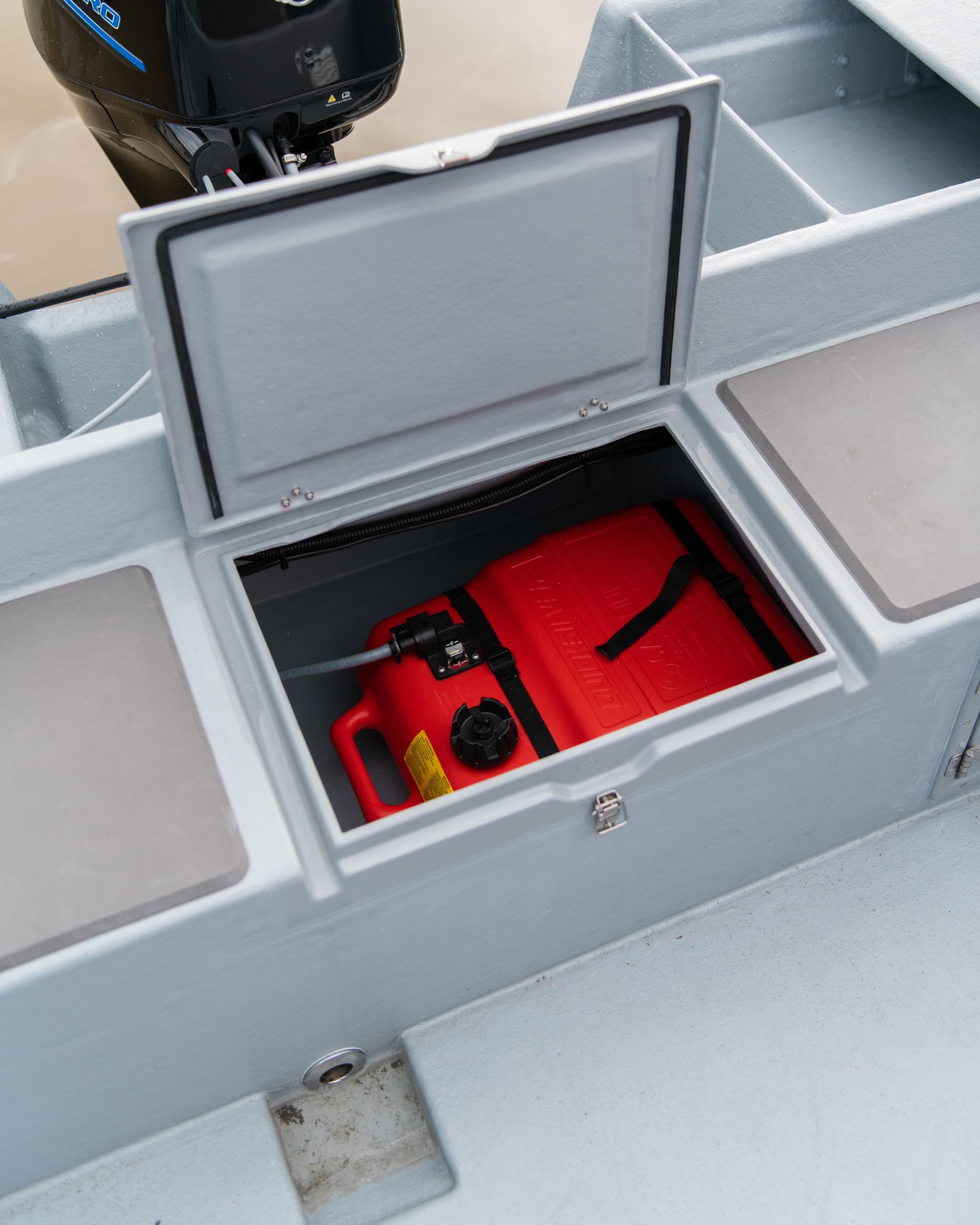 I akterbenken har den et stort rom med plass til to 20-liters bensintanker og eget batterirom, mens kassen i midtbenken kan tas ut brukes som fiskekasse. Det er også mulig å få montert teinehaler.