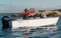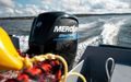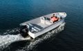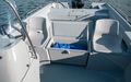 Helt akterut på Sting 600 Pro er det stuerom for tauverk og dregg (babord side), samt badestige som kan felles ut både fra sjøen og fra båten (også babord side). Sting 600 Pro leveres med solide Mercury-motorer, godt tilpasset bruksmønsteret på denne typen båt.