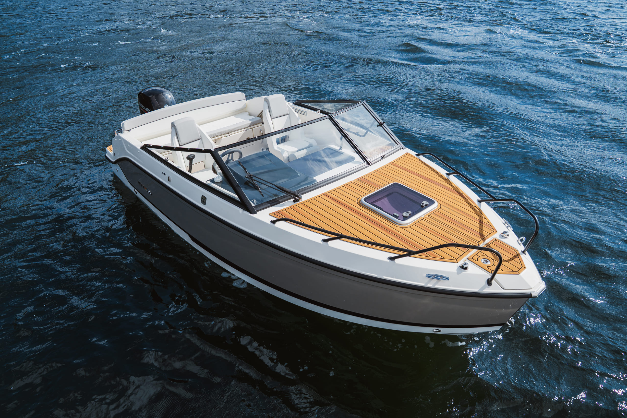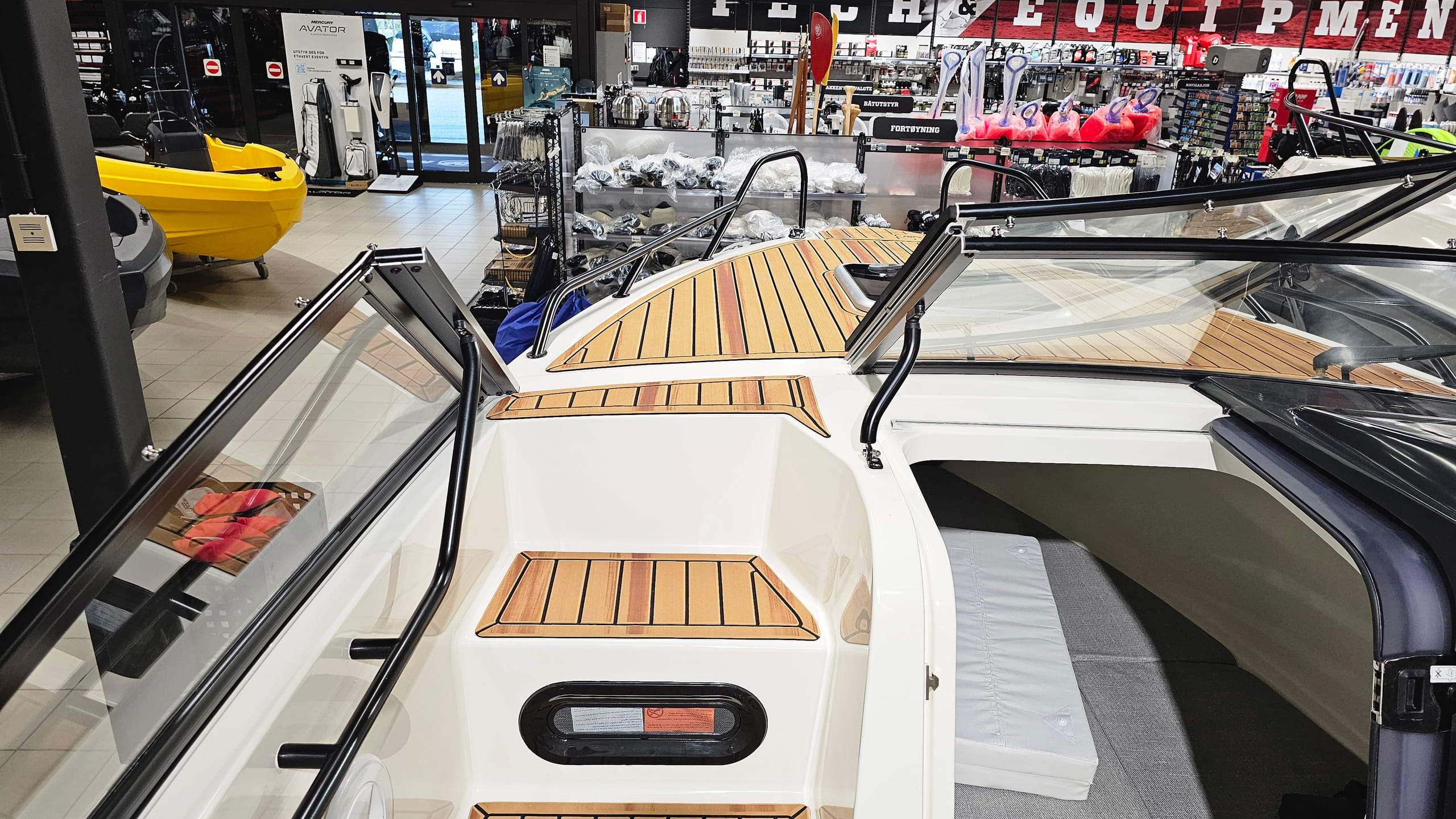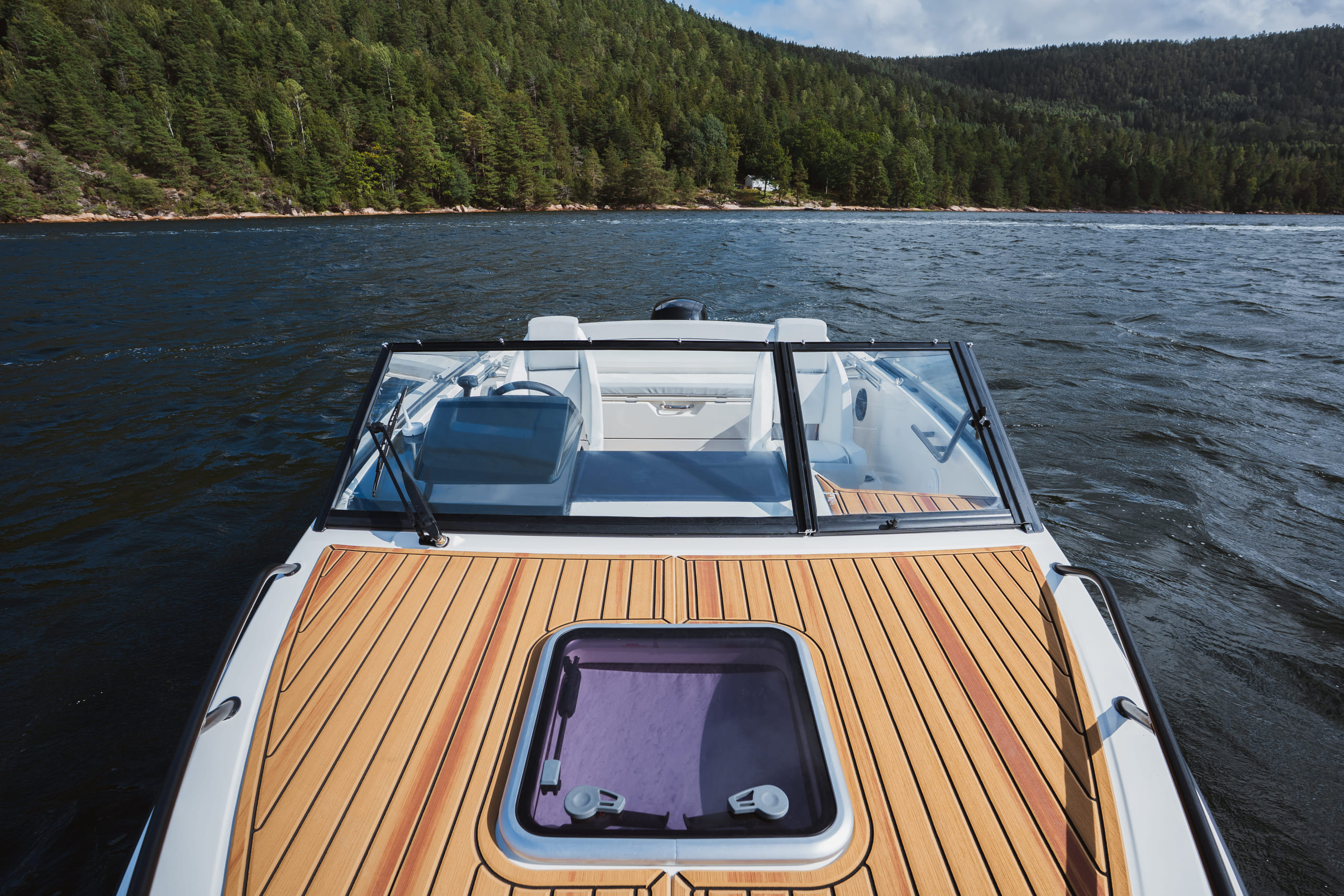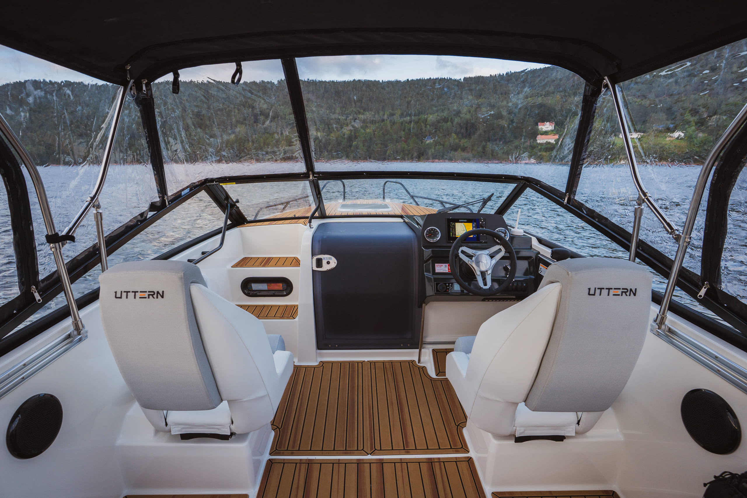 Som båtens kaptein kan du glede deg over at det svingbare setet ditt står på en base trukket i polyester for økt komfort. Passasjeren din, i et lignende sete, ser rett på smart plasserte steg til fordekket. Dette unike designet gir plass til en kabindør i midten av cockpiten. Den tonede kabindøren, en mindre luke som kan åpnes og en dekksluke gir lys og luft til kabinen. Inne har en dobbeltkøye plass til to personer som elsker å tilbringe natten på sjøen.