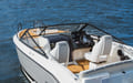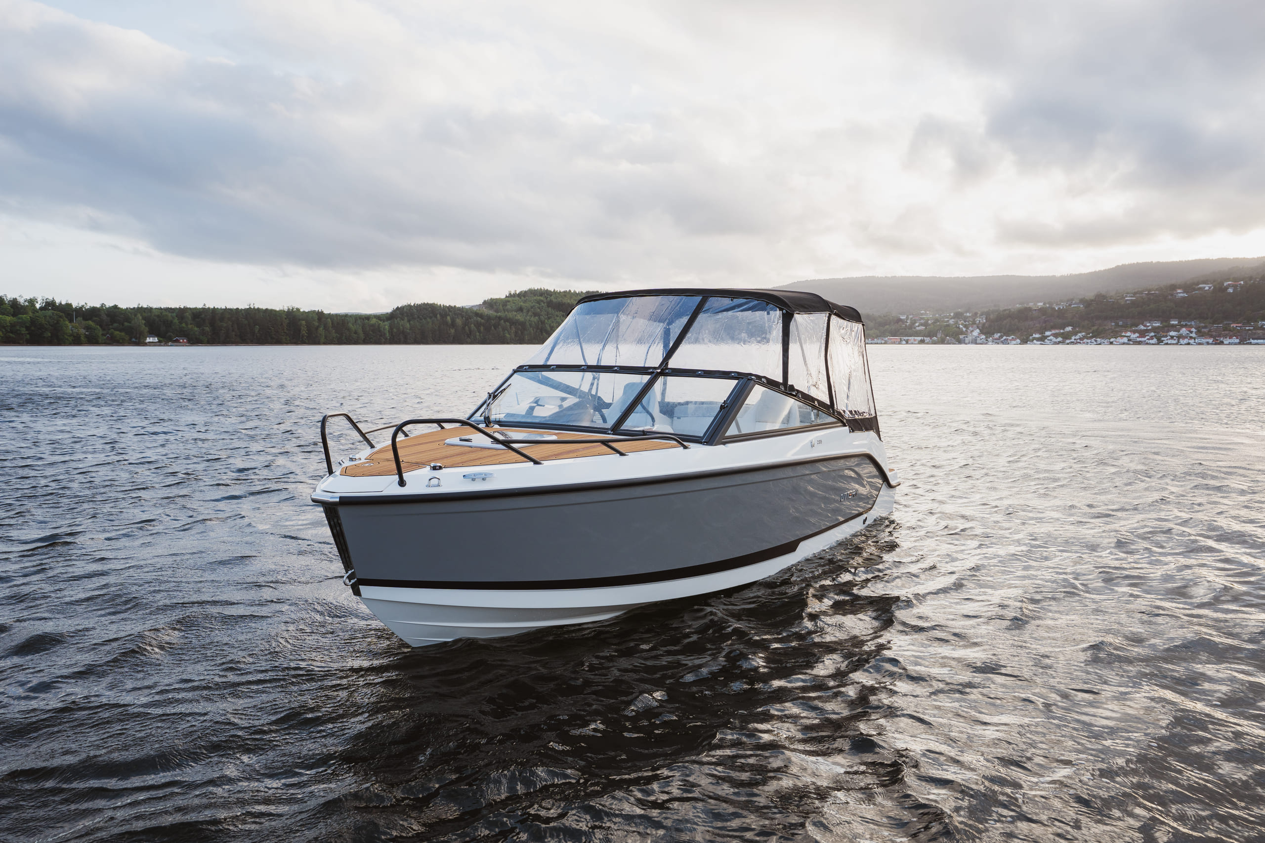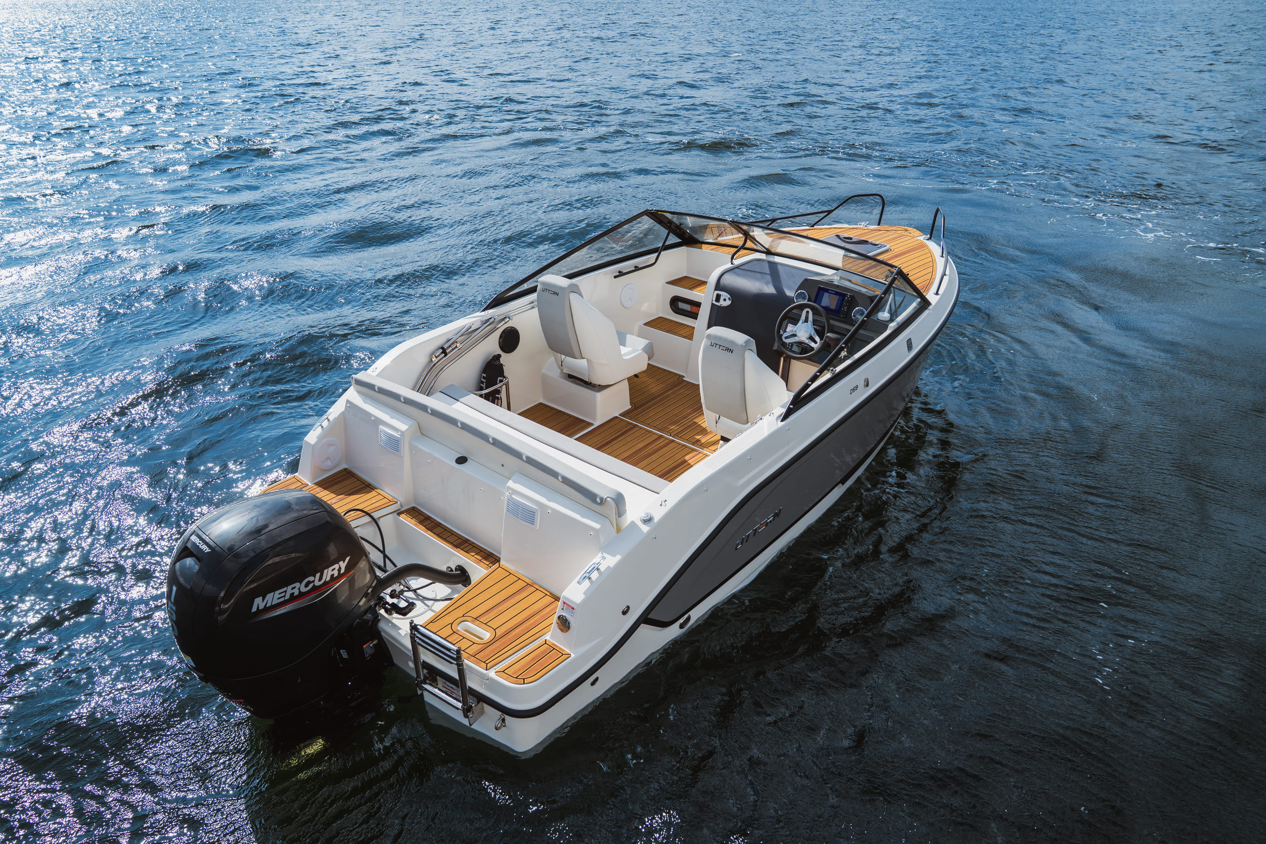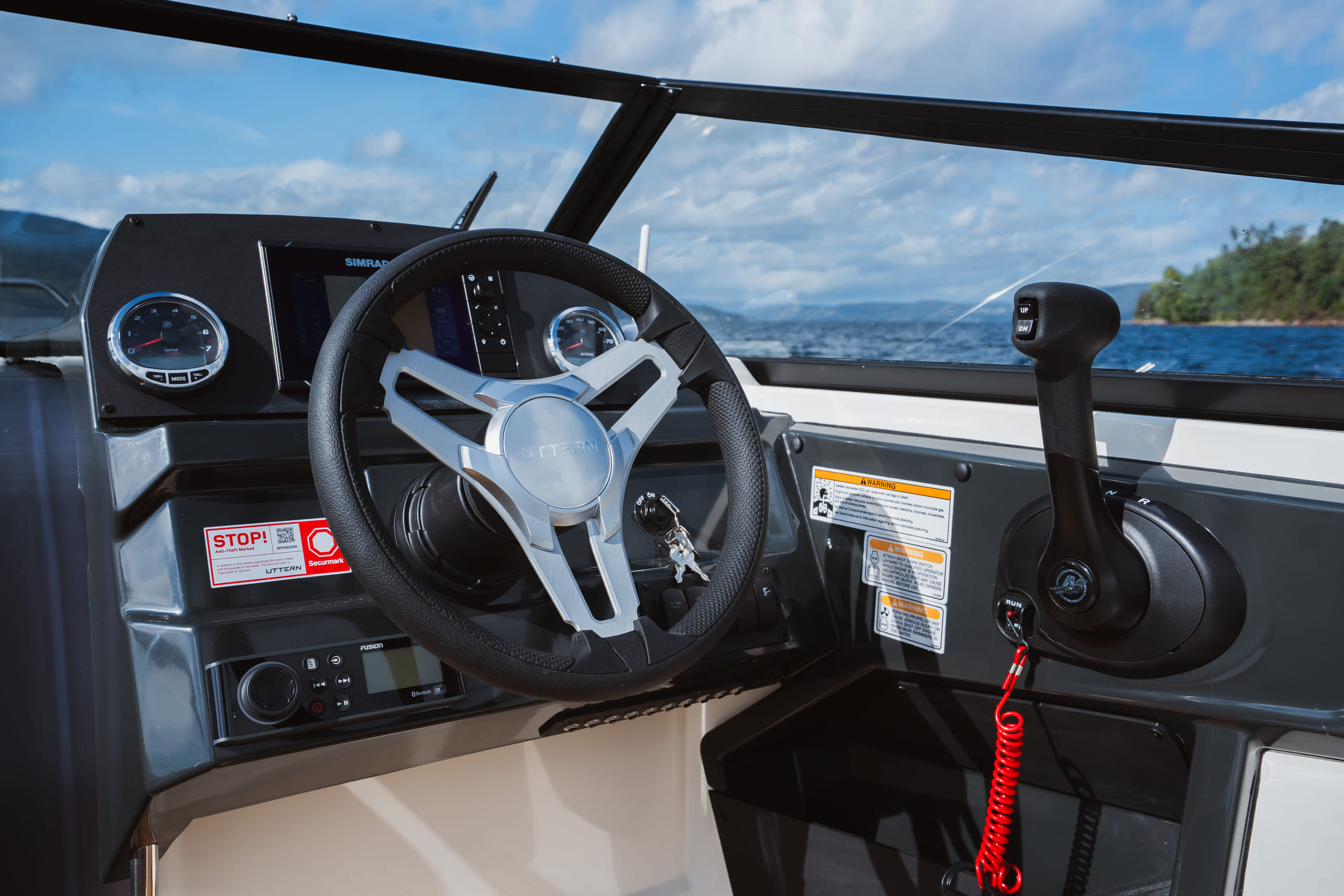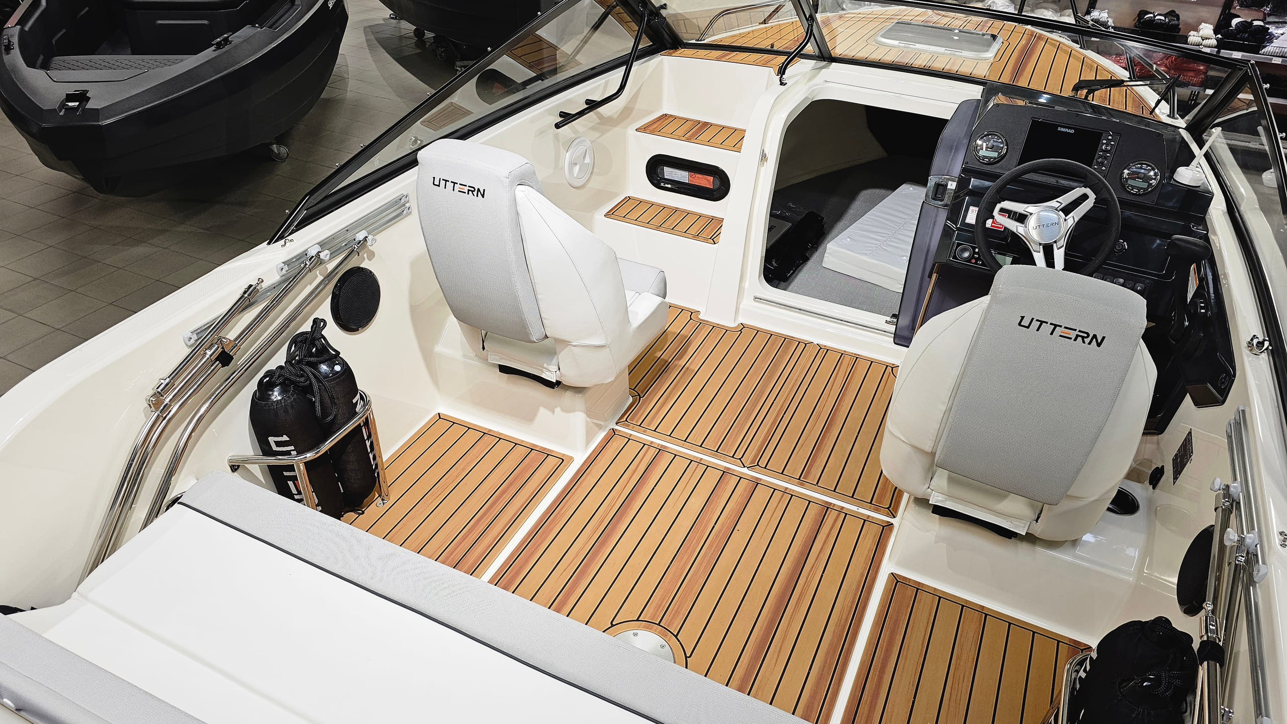 Som båtens kaptein kan du glede deg over at det svingbare setet ditt står på en base trukket i polyester for økt komfort. Passasjeren din, i et lignende sete, ser rett på smart plasserte steg til fordekket. Dette unike designet gir plass til en kabindør i midten av cockpiten. Den tonede kabindøren, en mindre luke som kan åpnes og en dekksluke gir lys og luft til kabinen. Inne har en dobbeltkøye plass til to personer som elsker å tilbringe natten på sjøen.