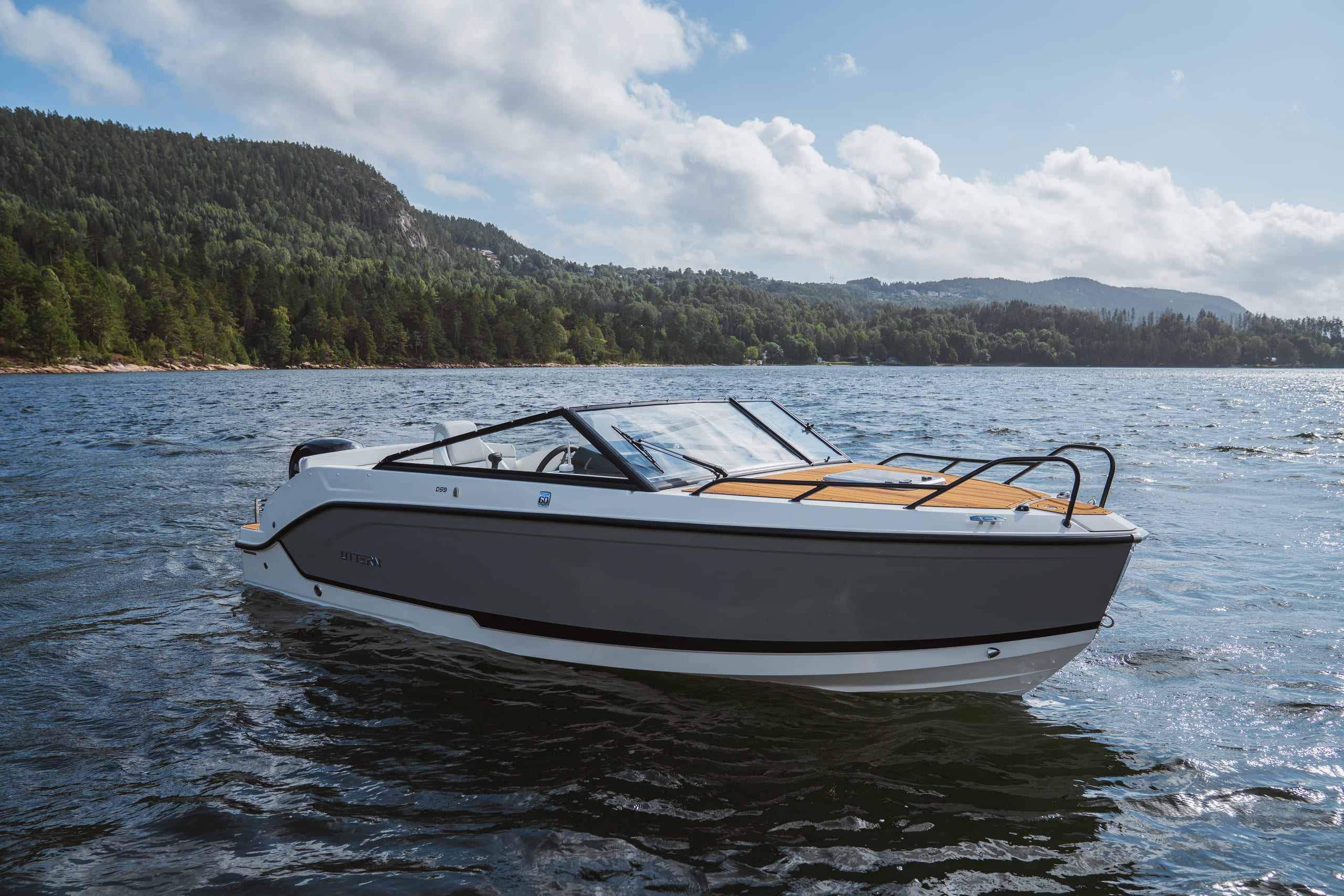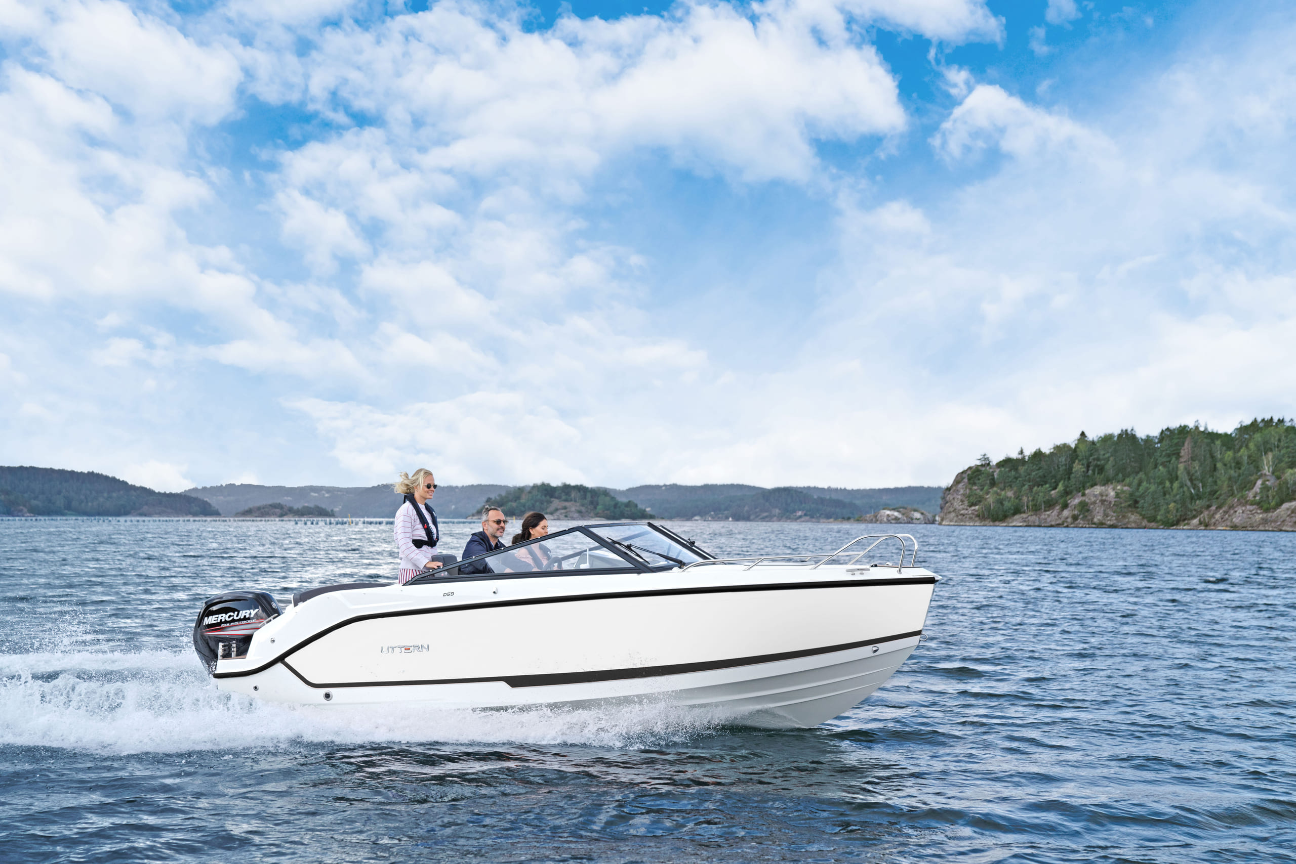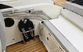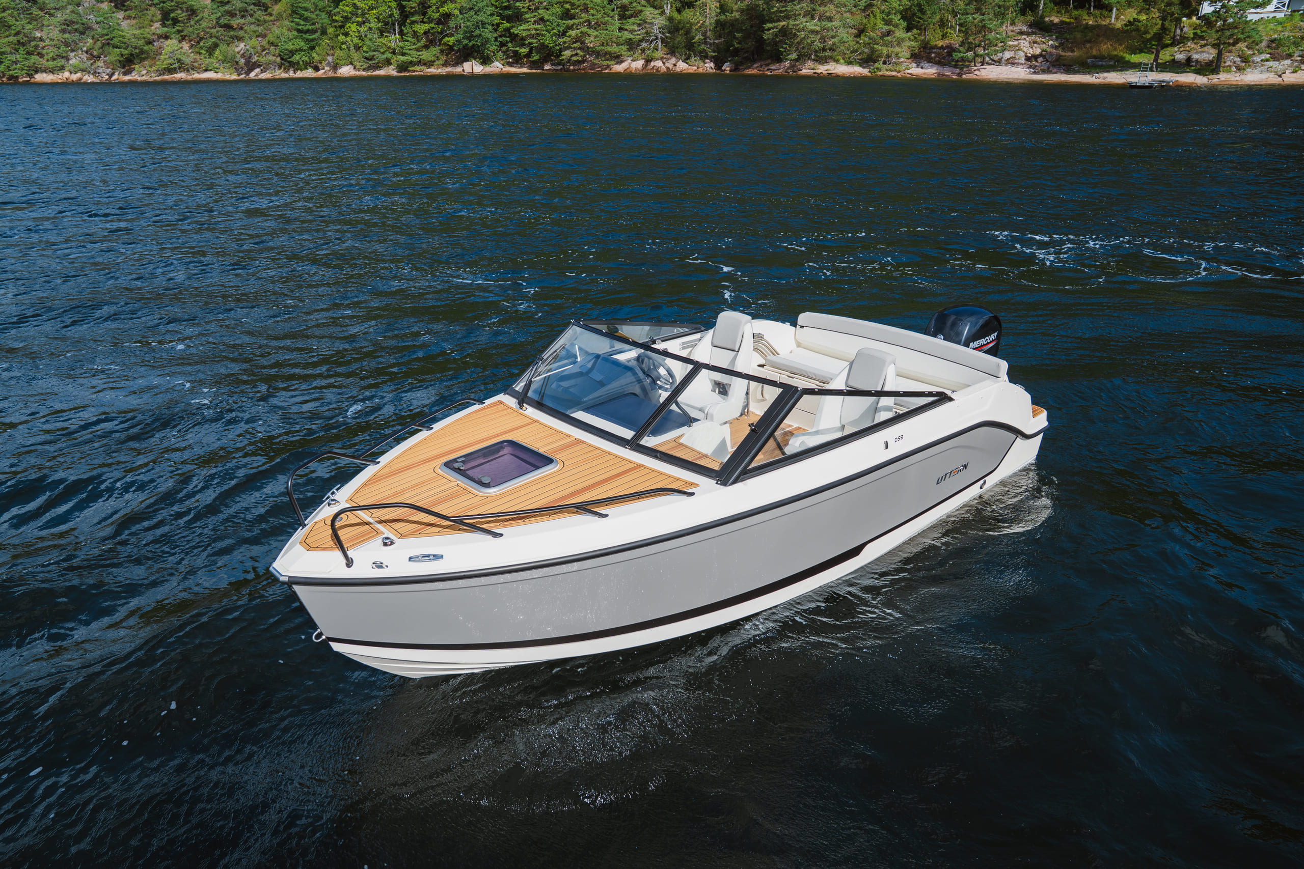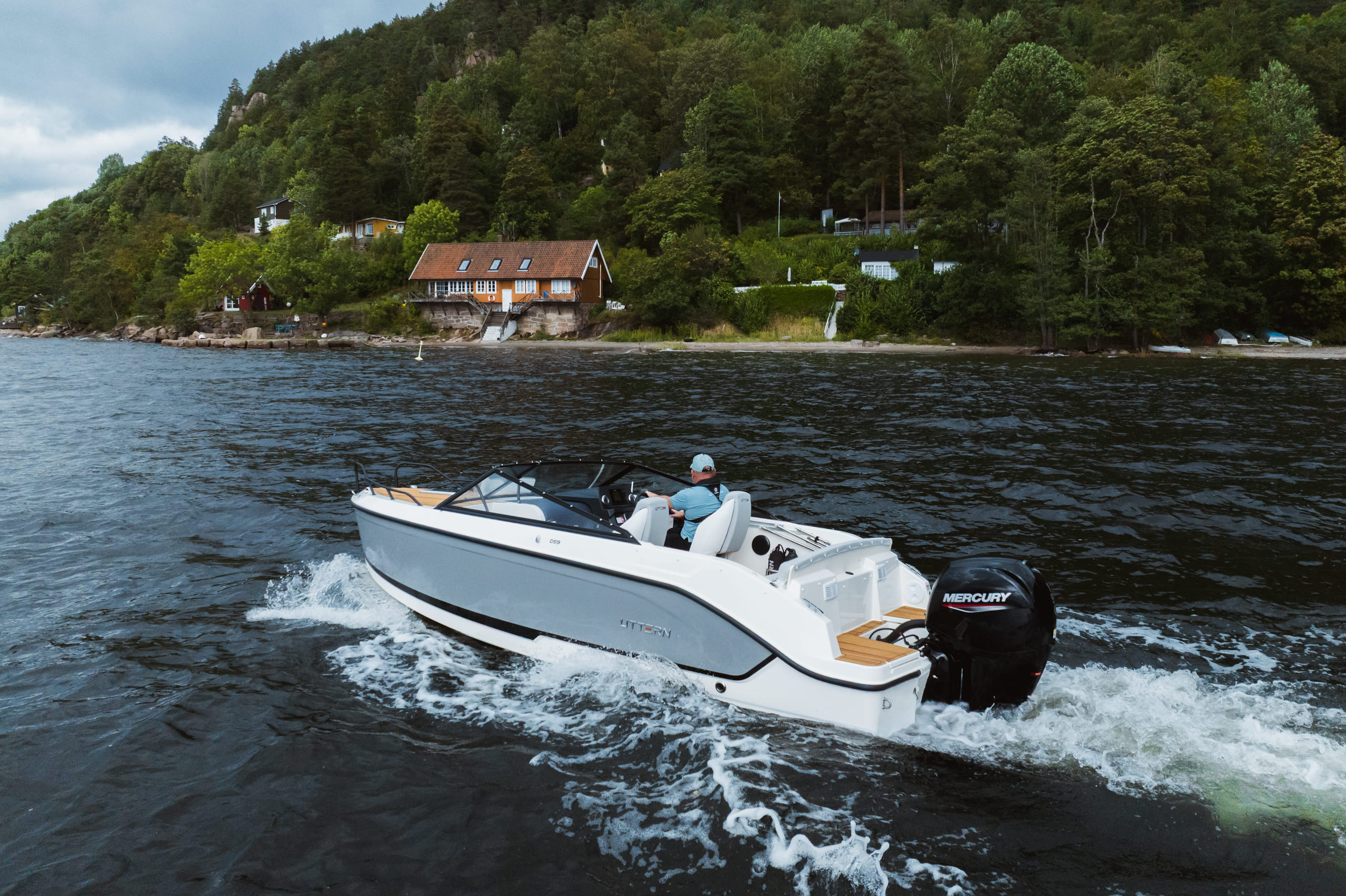 Som båtens kaptein kan du glede deg over at det svingbare setet ditt står på en base trukket i polyester for økt komfort. Passasjeren din, i et lignende sete, ser rett på smart plasserte steg til fordekket. Dette unike designet gir plass til en kabindør i midten av cockpiten. Den tonede kabindøren, en mindre luke som kan åpnes og en dekksluke gir lys og luft til kabinen. Inne har en dobbeltkøye plass til to personer som elsker å tilbringe natten på sjøen.