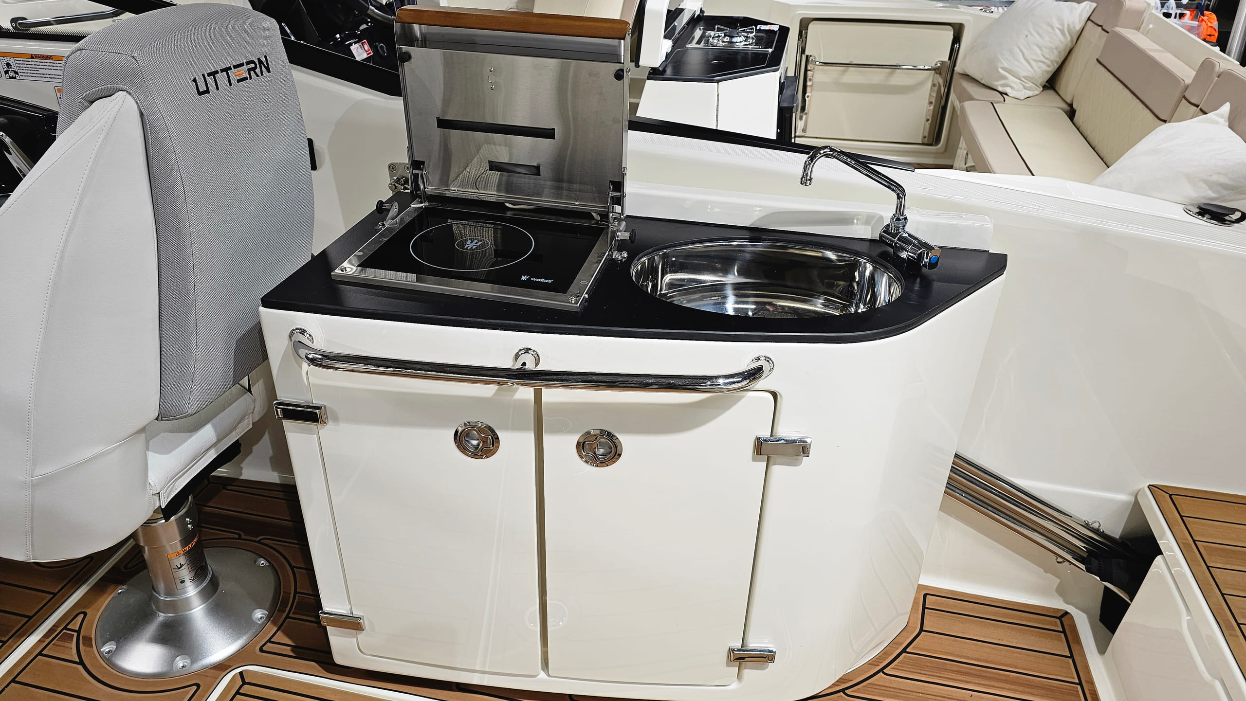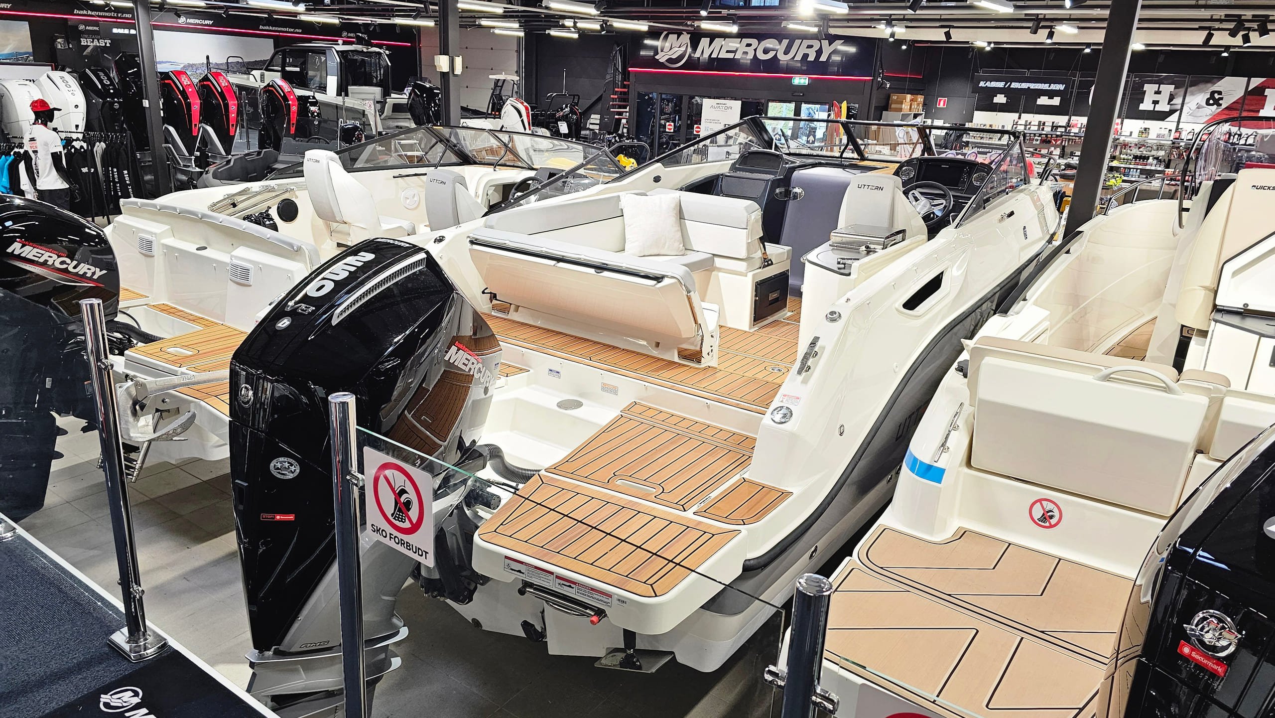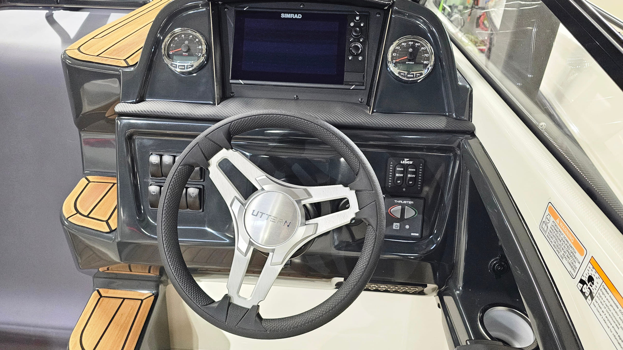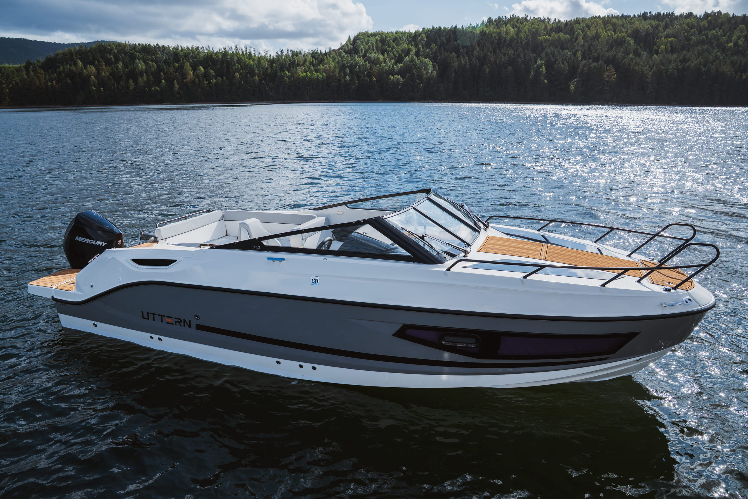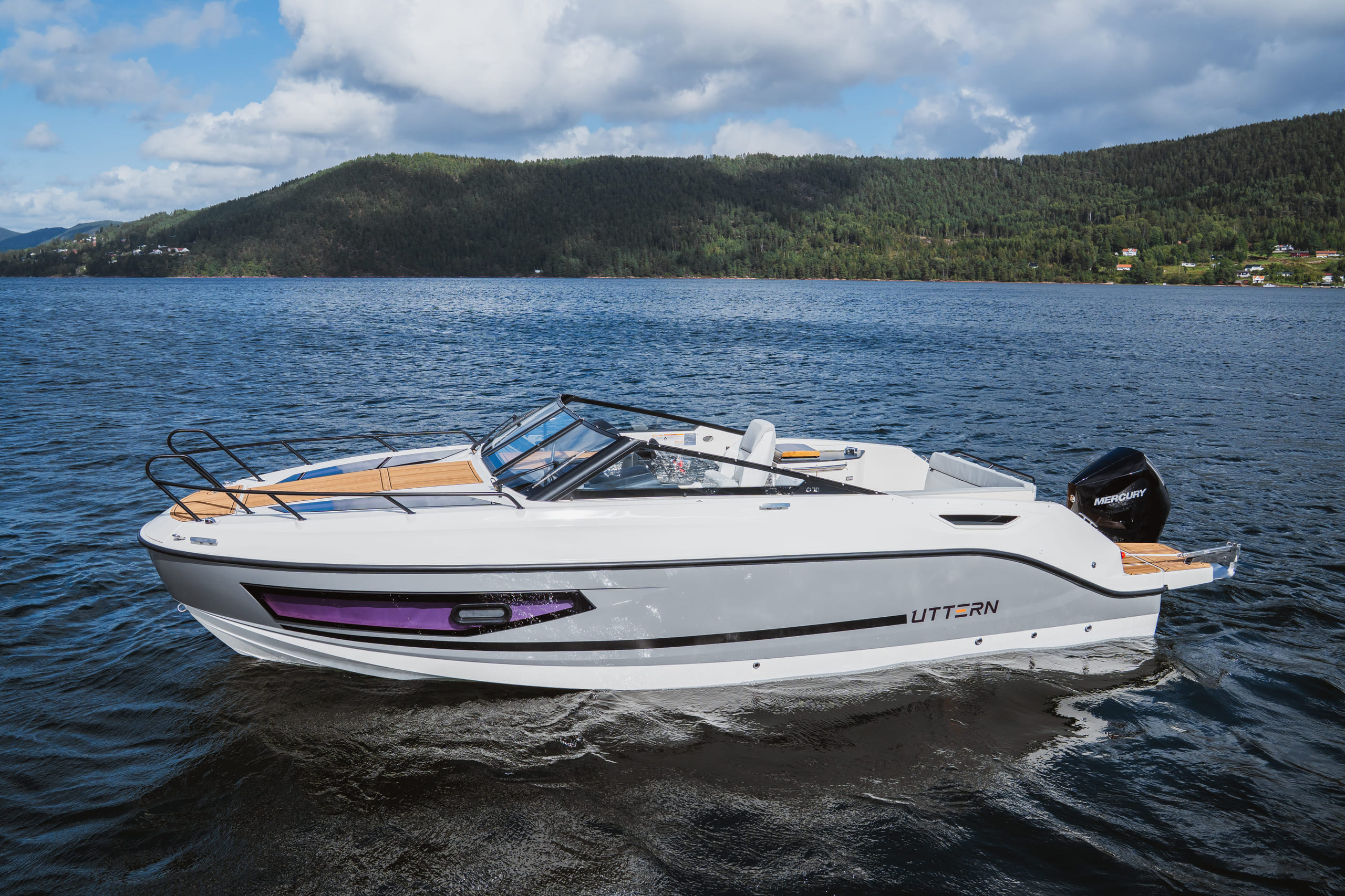 Uttern leveres med den Mercury motoren du selv ønsker. Enten med V-6 eller V-8 motor med effekt opp til 300 hester. Det gir rask respons, høy toppfart og enkel manøvrering. Cockpiten er lett å entre. Den har riktig plasserte gripehåndtak, og det er uproblematisk å bevege seg gjennom båten fra baug til hekk og via badeplattformene kan du gli ut i vannet.