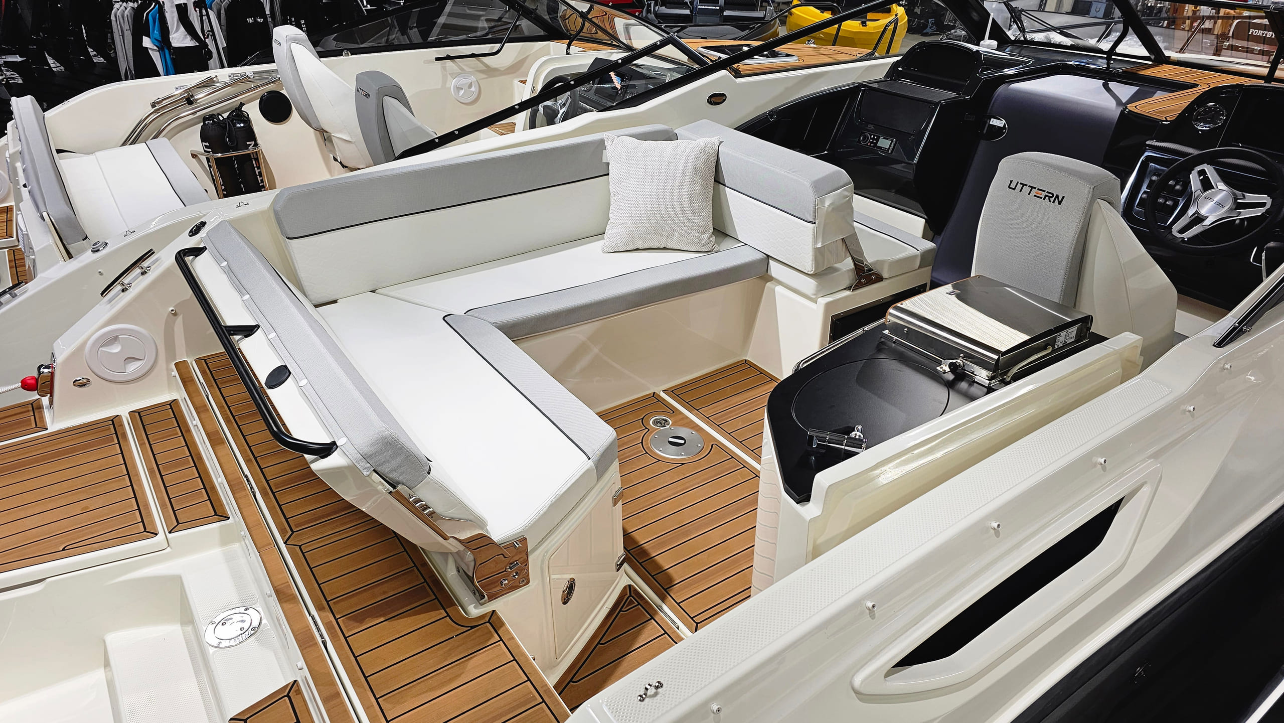 Passasjerene finner seg fort til rette om bord i Uttern D70 Daycruiser. Cockpiten er stor og byr på mange bruksmuligheter. Du kan kose deg ute hele dagen og lage mat. I cockpiten er det komplett bysse med vask, kjøleskap og kokeapparat. Den brede døren gjør det lett å komme ned i kabinen. Via badeplattformene kan bade og ha det moro med vannsport.