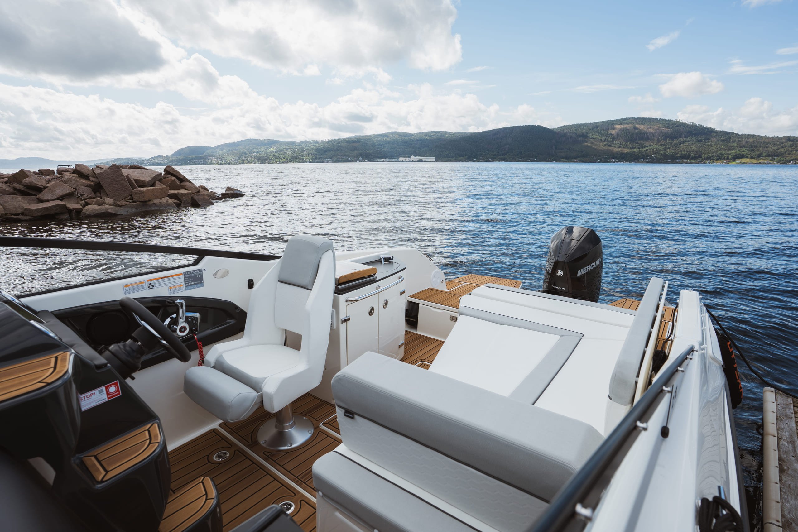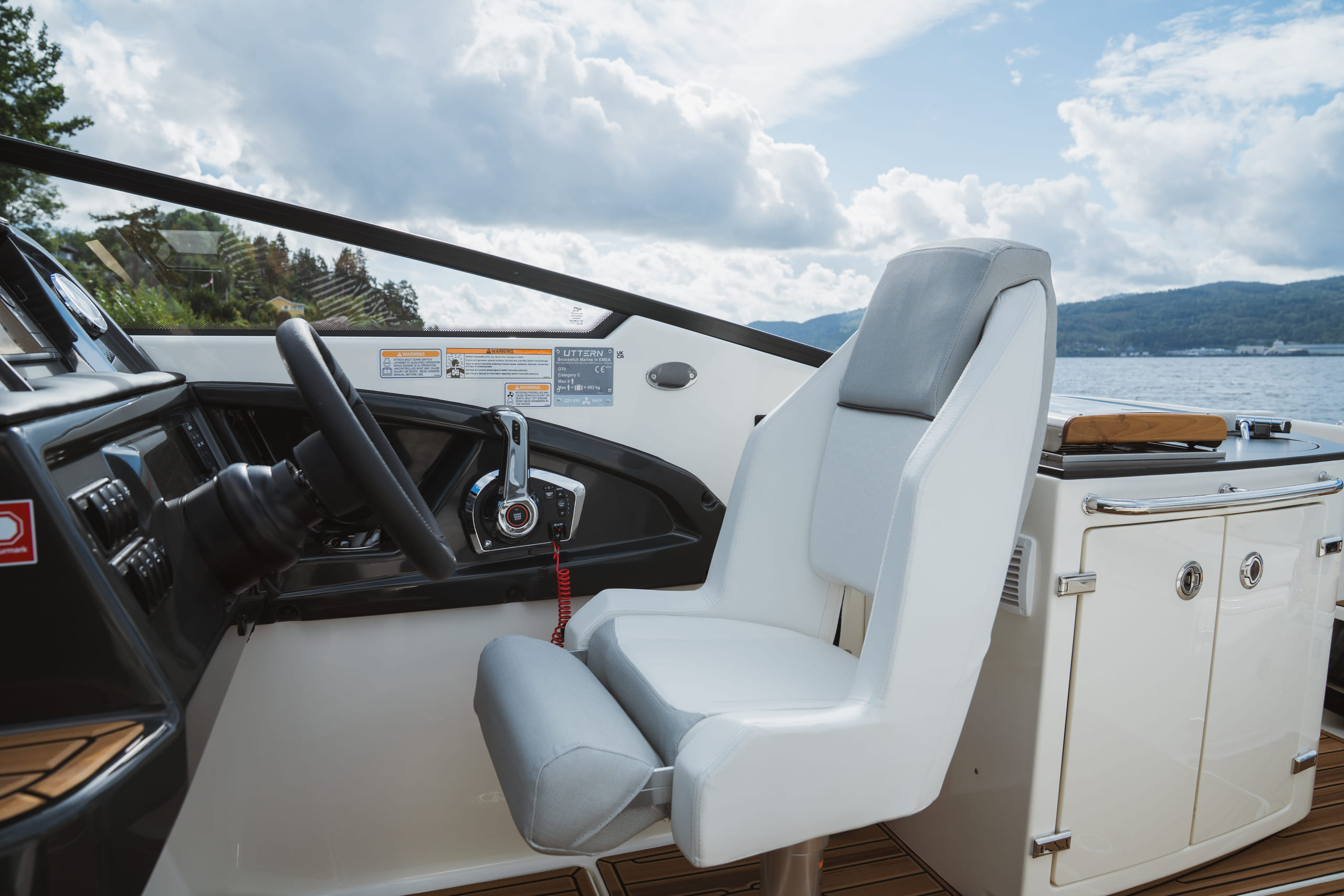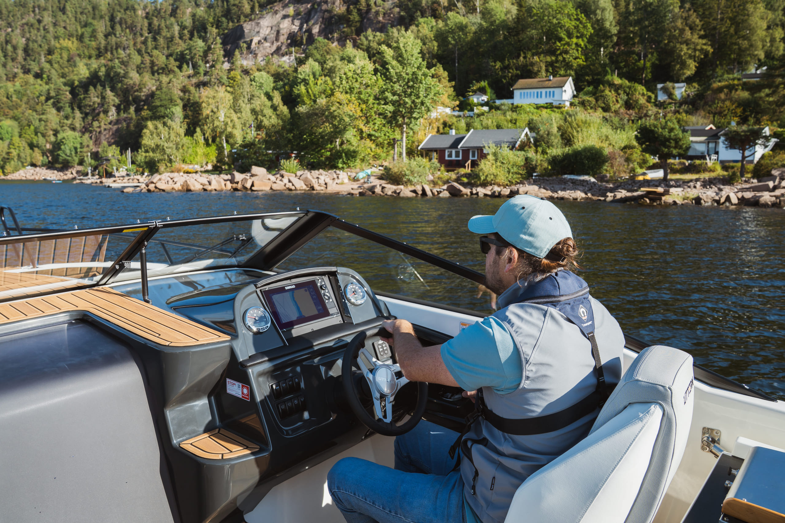 Stikk av på en dagstur eller en helg på sjøen. Den dype cockpiten om bord gjør turen trygg og sikker. Den kraftige vindskjermen beskytter cockpiten mot vind og sjøsprøyt. I kabinen sover dere godt og har fantastisk utsikt gjennom de store vinduene i skrogsidene.