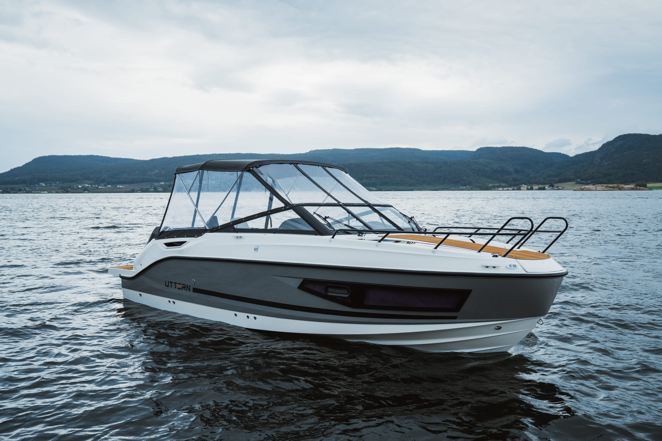 Den distinkte og enkle linjeføringen gir D70 et moderne daycruiser med et elegant preg. Den nye skarpe mørke grå skrogfargen og en veltilpasset vindskjerm får båten til å se sporty ut. Om bord legger du med en gang merke til det to-fargete dashbordet. Utterns Smart Design-filosofi har skapt seter med integrerte armstøtter som har koppholdere, en bysseseksjon i cockpiten og et rommelig, nærmest usynlig stuverom til kalesjen. Kabinen er komfortabel med mye lys, stor køye og praktiske oppbevaringsrom.