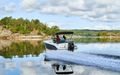 Uttern S53 er billetten din til regelmessige dagsturer på vannet. Den sporty båten med midtkonsoll tar opptil 6 personer. Du kan ta med alt du klarer å bære, fra mat og drikke til solkrem og vannski, fordi Uttern S53 har rikelig med oppbevaringsplass.