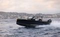Båten kan utstyres med 2×225 hk og 1×400 V10, som når opp til +50 knop i fart.